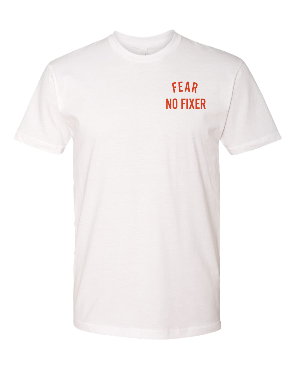 Presenting: The official tee of the cheap old houses movement! With our mantra "Fear No Fixer" on the front and our logo on the back, everyone will know where you stand when it comes to the age-old McMansion v. Cool Old House debate. Tee is made of 100% cotton.